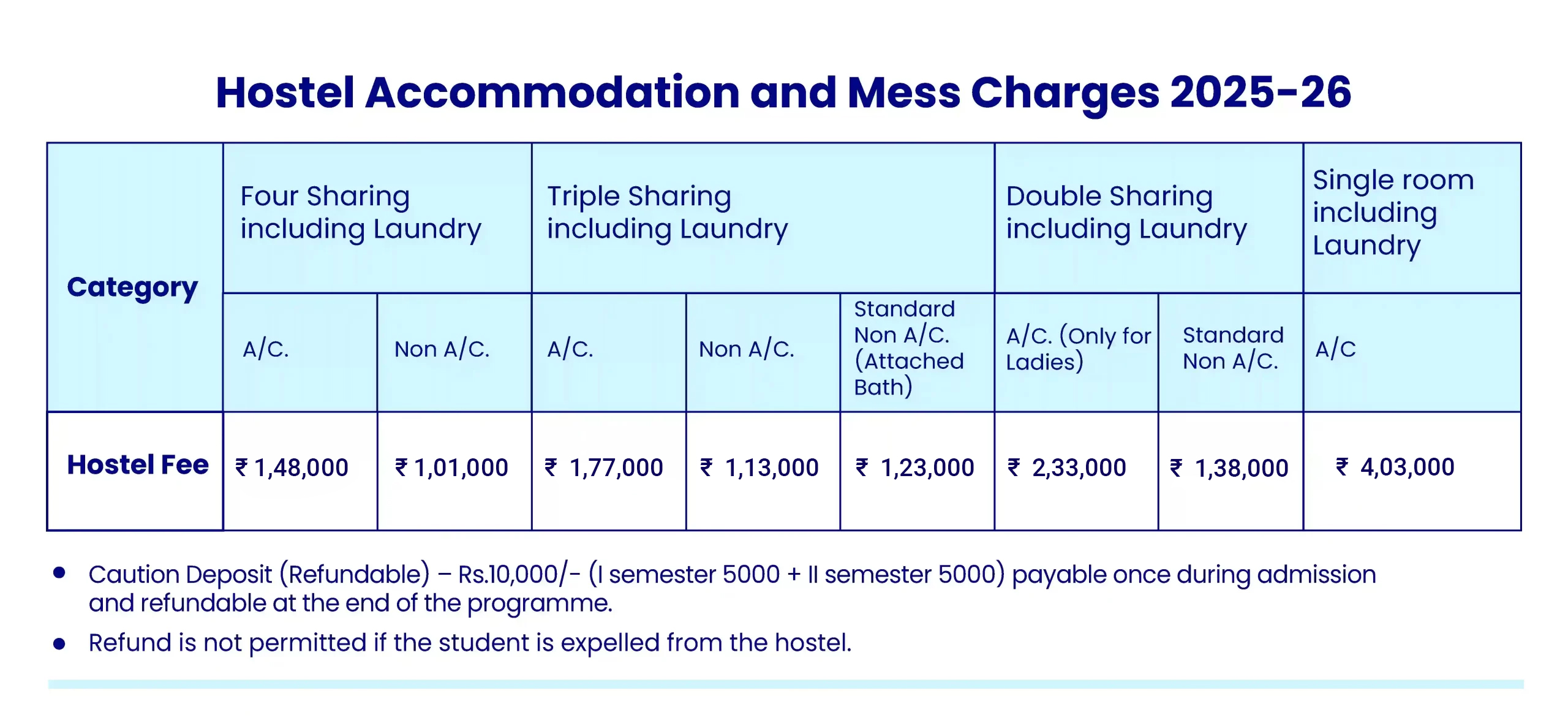 A double sharing hostel room provides a shared yet comfortable space for students, equipped with essential amenities to